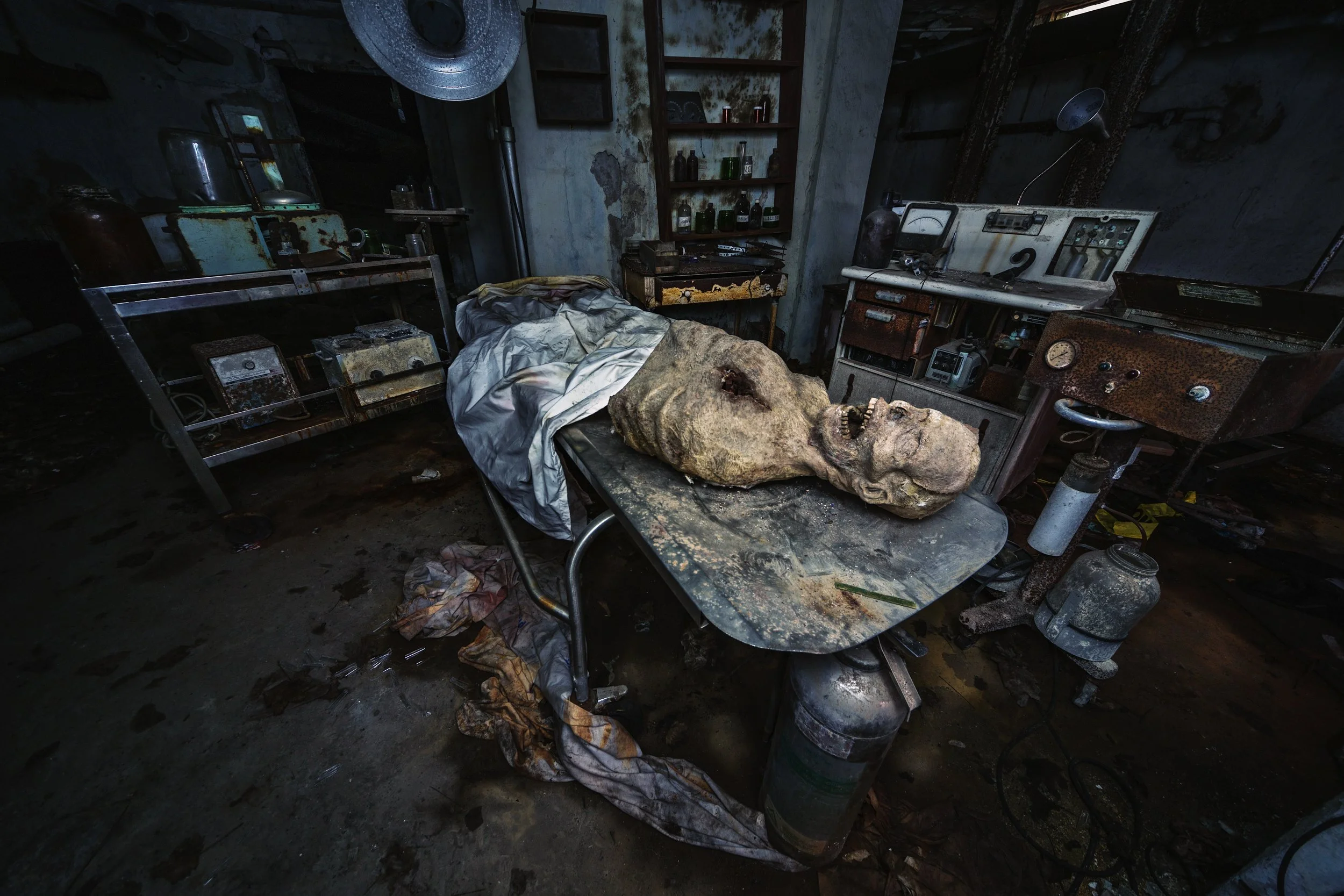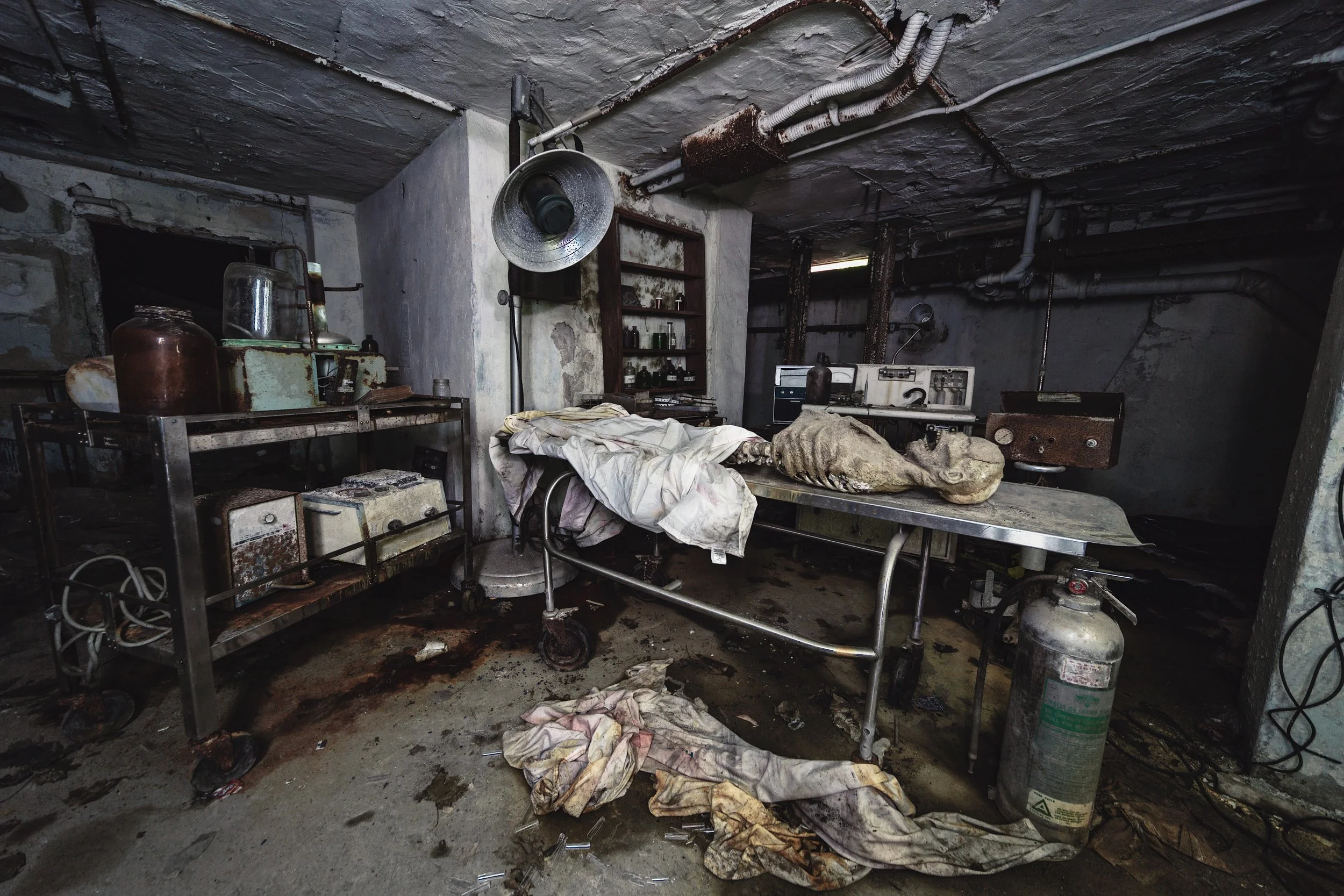 On this explore, Fran, Corey, & I explore an abandoned Tuberculosis Hospital. The construction & colors of these buildings are beautiful. We had been there before so we thought we knew our way around but surprisingly got lost for a little while which we had a pretty good laugh about. After a couple hours of shooting, our day was coming to an end but we saved one area of this sanitarium for last. We heard rumors followed by photos of a creepy corpse that is left in the basement. We started to look around for a few minutes until we finally found it. Laying in the corner is the torso, spine, and skull of a corpse prop. It was definitely a great way to end our day of exploring!